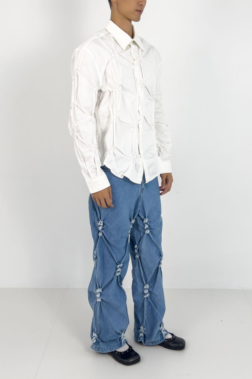 The “ATTIRE” cotton shirt features our signature smocking technique throughout the garment, transforming an ordinary shirt into something fun and fluid.