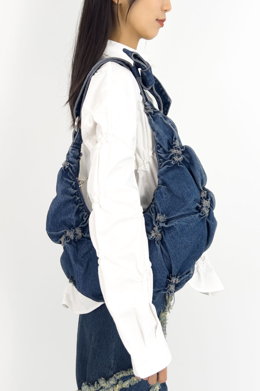 “HACK” features our signature smocking and fraying technique throughout. Each piece is manufactured using carefully sourced denim material with a treatment process that gives it a unique shade and washed effect.